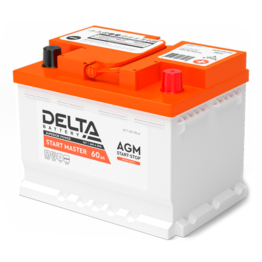 АКБ 6СТ-60.0 DELTA START MASTER AGM (L2, пуск. ток 660, плюс справа, гарантия 12 месяцев, 242х175х190, Китай)