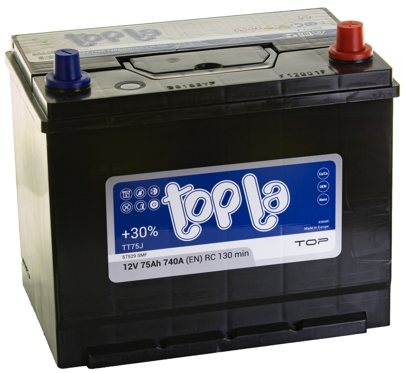 АКБ 6СТ-70.0 TOPLA TOP ASIA SMF (D26L/пуск.ток 700А/плюс справа/гарантия 12 месяцев/259x175x221/Турц