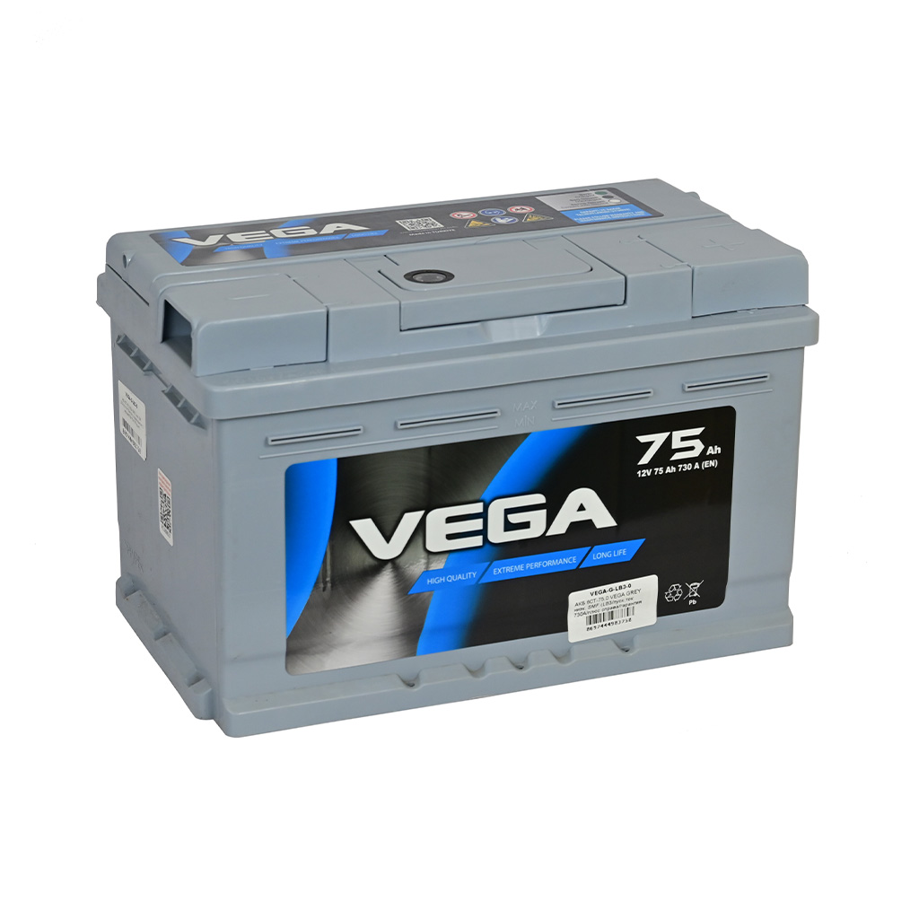 Характеристики «АКБ 6СТ-75.0 VEGA GREY низк. SMF (LB3/пуск.ток 730А/плюс справа/гарантия 12 месяцев/278х175х175/Турция)»