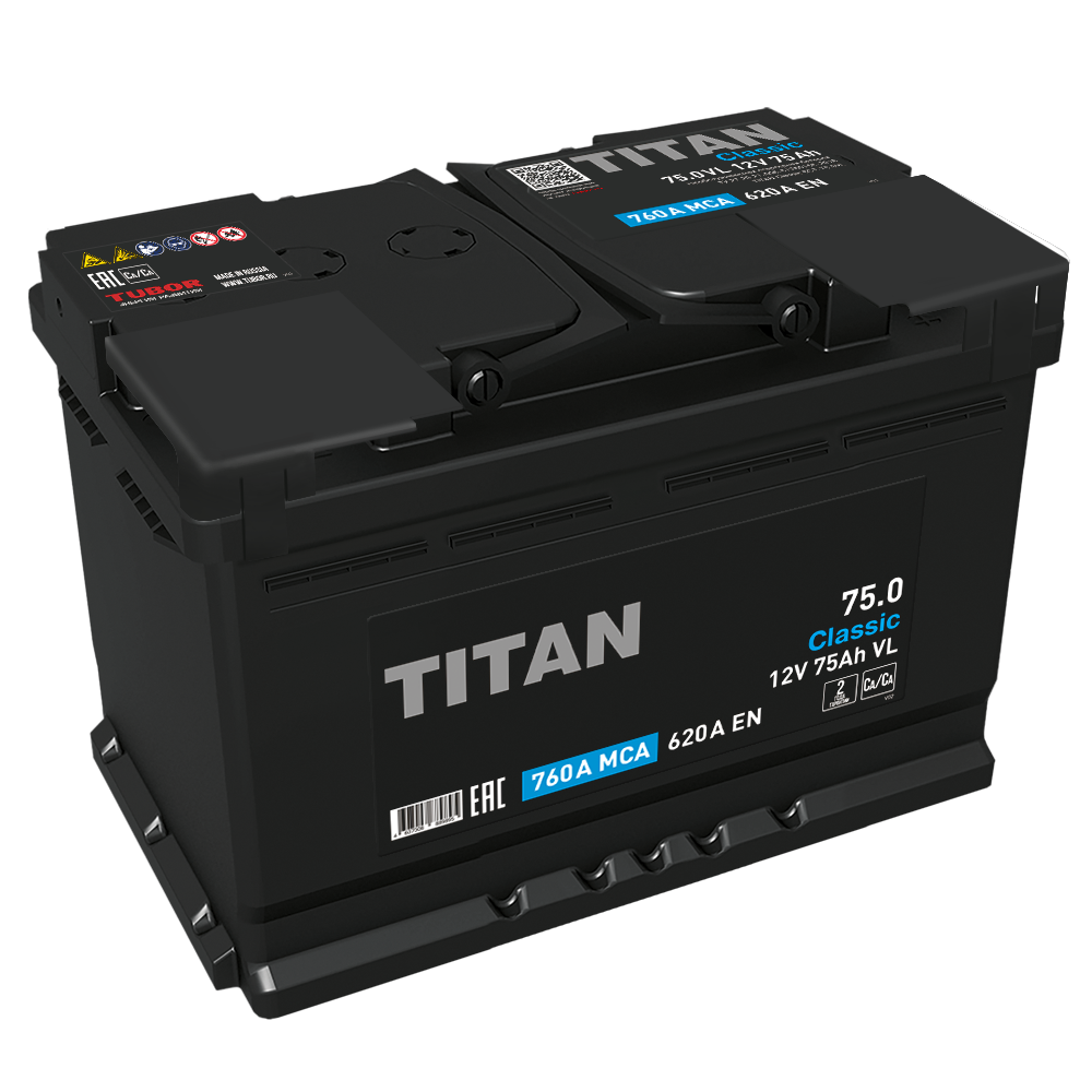 АКБ 6СТ-90.0 VL TITAN Classic (L5/пуск.ток 720/плюс справа/гарантия 12 месяцев/353х175х190)