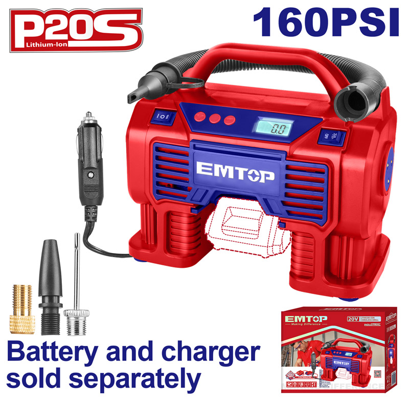 Аккумуляторный авто компрессор Напряжение: 20 В Макс.давление: 160 фунтов на квадратный дюйм/11 бар С 3-мя светодиодными индикаторами Цифровой дисплей