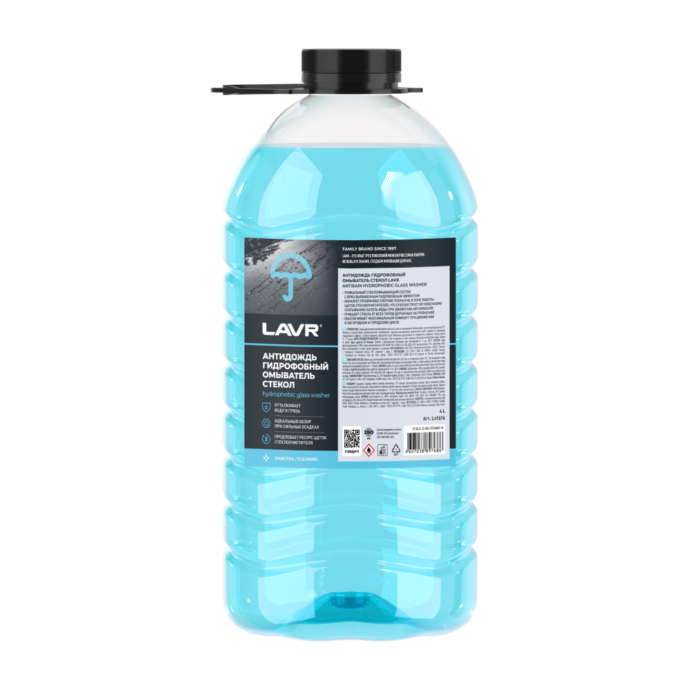 Характеристики «Антидождь гидрофобный омыватель стекол LAVR, 4 л»
