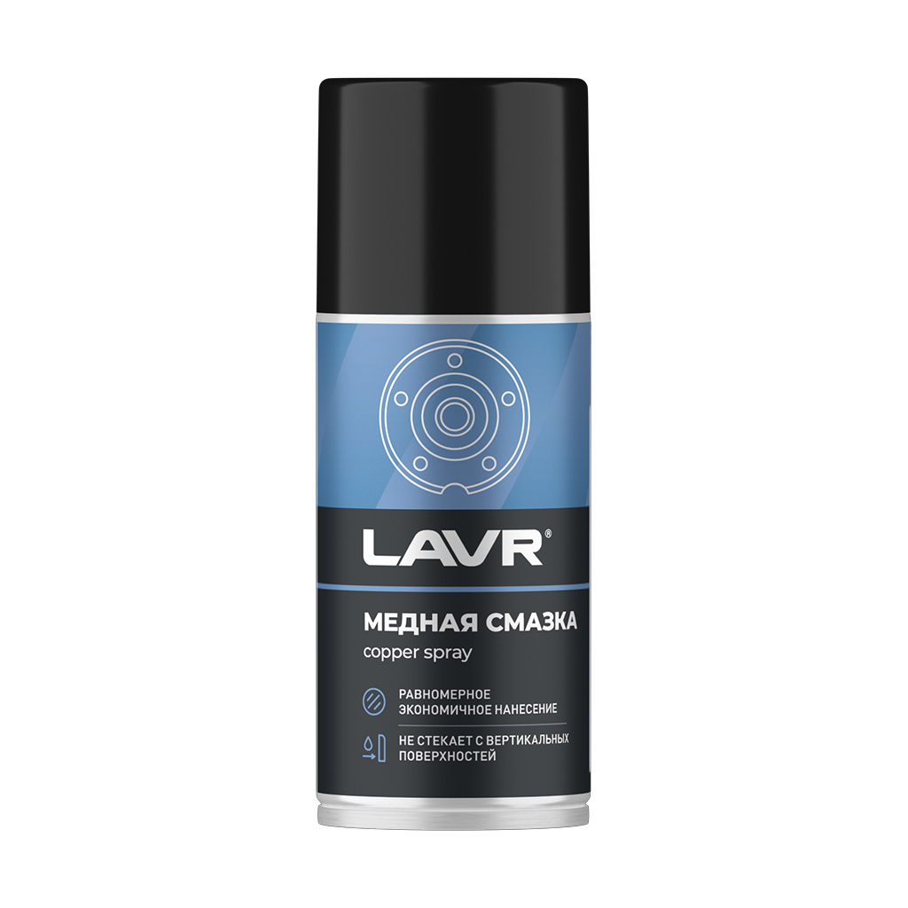 Смазка в формате аэрозоля с повышенным содержанием медного порошка предотвращает прикипание, сваривание и коррозию термонагруженных деталей. Применяется для обработки резьбовых соединений выхлопной и тормозной систем, болтов и шпилек ступиц колес, свечей зажигания и накаливания.
