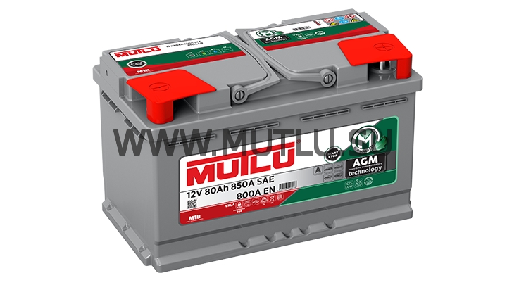 АКБ 6СТ-80.0 Mutlu AGM (L4/пуск.ток 850А/плюс справа/гарантия 12 месяцев/315х175х190/Турция)