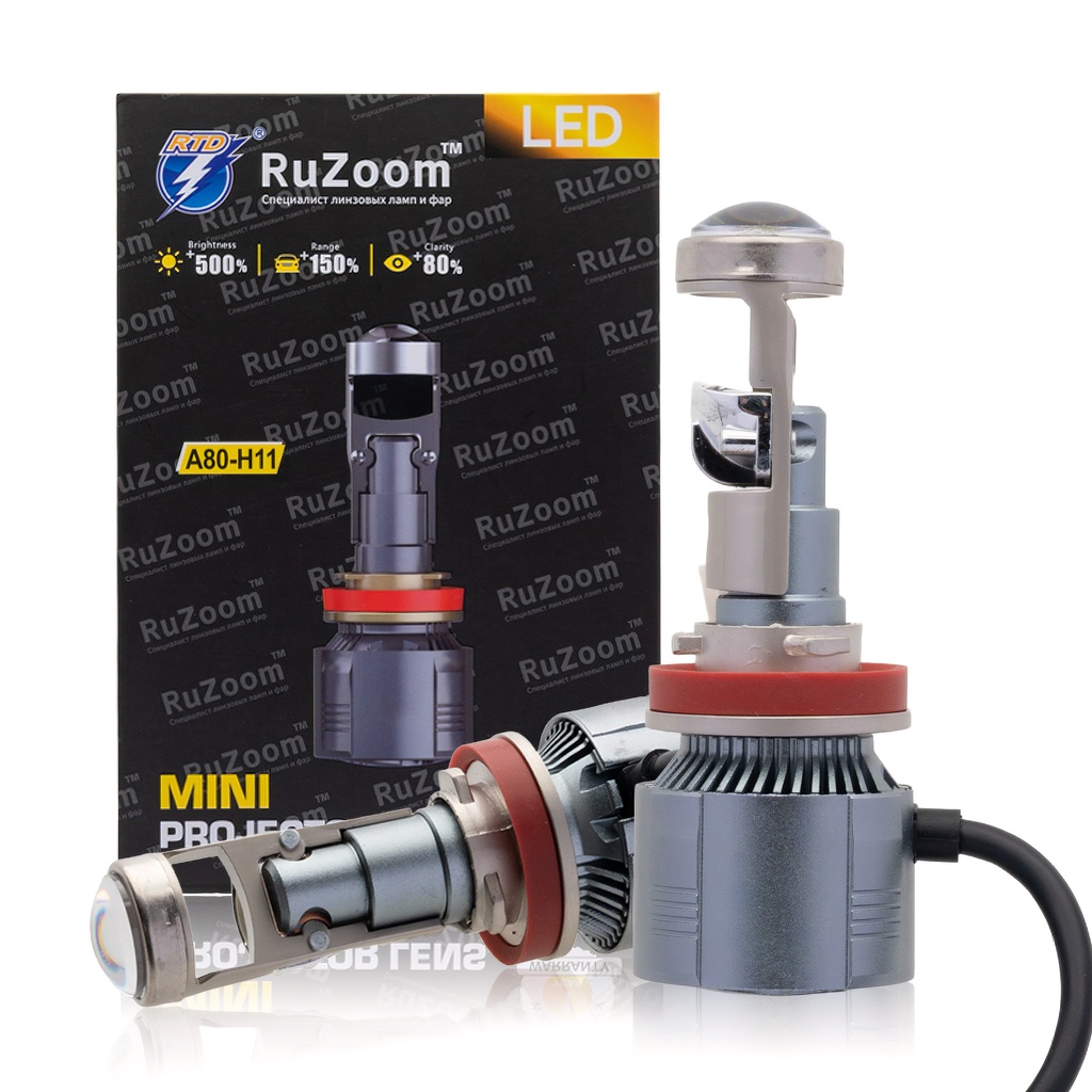 Лампа светодиодная c линзой H11 6500K 3200Lm (PGJ19-2) 12-24В, коробка: 2шт