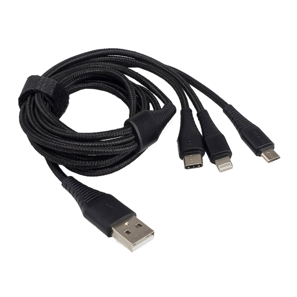 Кабель TPC-U31B, USB - Lightning/MicroUSB/Type C, чёрный, 1,2 метра