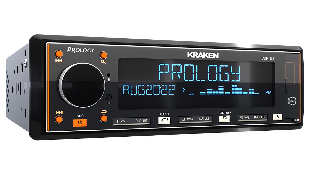 PROLOGY CDP-8.1 KRAKEN — FM / USB ресивер с Bluetooth® и встроенным DSP - аудиопроцессором, стандартного размера 1DIN, который обеспечивает прием радиостанций в диапазоне FM / УКВ и воспроизведение аудиофайлов MP3, WAV и FLAC форматов, записанных на USB накопители, передачу звука с внешних источников через линейный аудиовход и беспроводной интерфейс Bluetooth®. Поддерживается управление мобильным телефоном через интерфейс Bluetooth® (ver. 4,2).