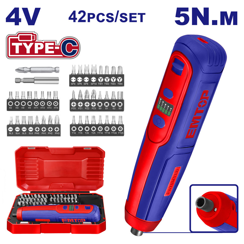 Отвертка аккумуляторная EMTOP Напряжение: 4 В Шестигранный хвостовик: 1/4 " Скорость холостого хода: 260 о