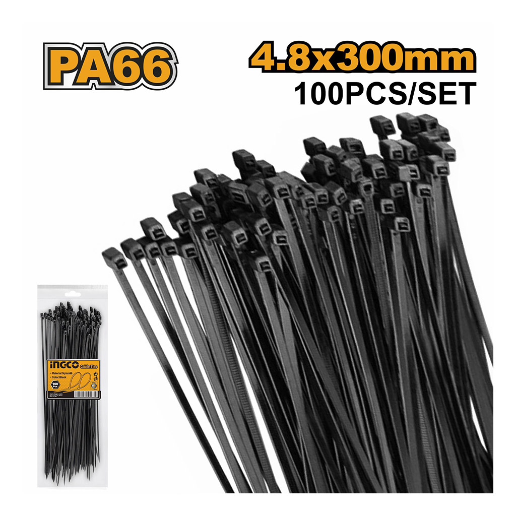 Стяжки нейлоновые черные 4.8х300 мм INGCO HCTB30048