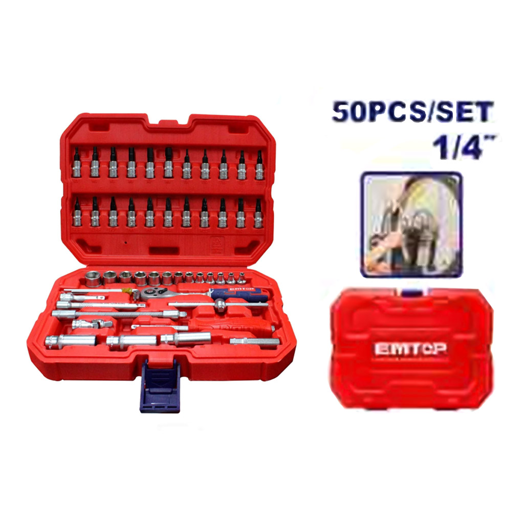 Набор торцевых головок с трещоткой 1/4" 50 предметов EMTOP ESKT14501 - комплект профессионального инструмента из 50 предметов для ремонта и обслуживания автомобилей и прочей техники.