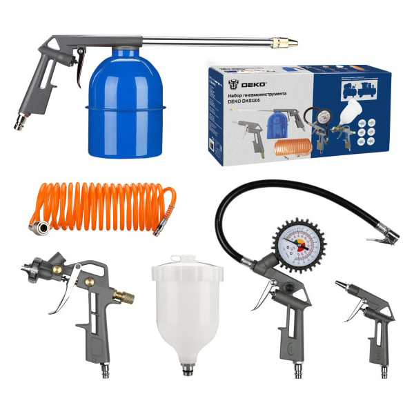 Набор пневмоинструмента DEKO DKSG05 (5 предметов краскораспылитель с верхним бачком)