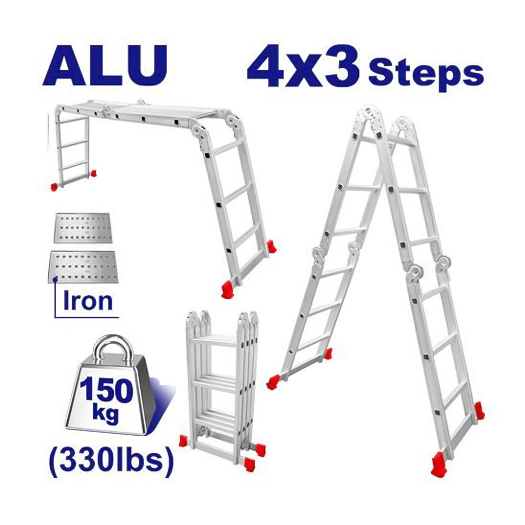 Характеристики «Лестница-трансформер 3 положения, макс. высота - 338 см, макс нагрузка - 150 кг, вес - 14 кг»