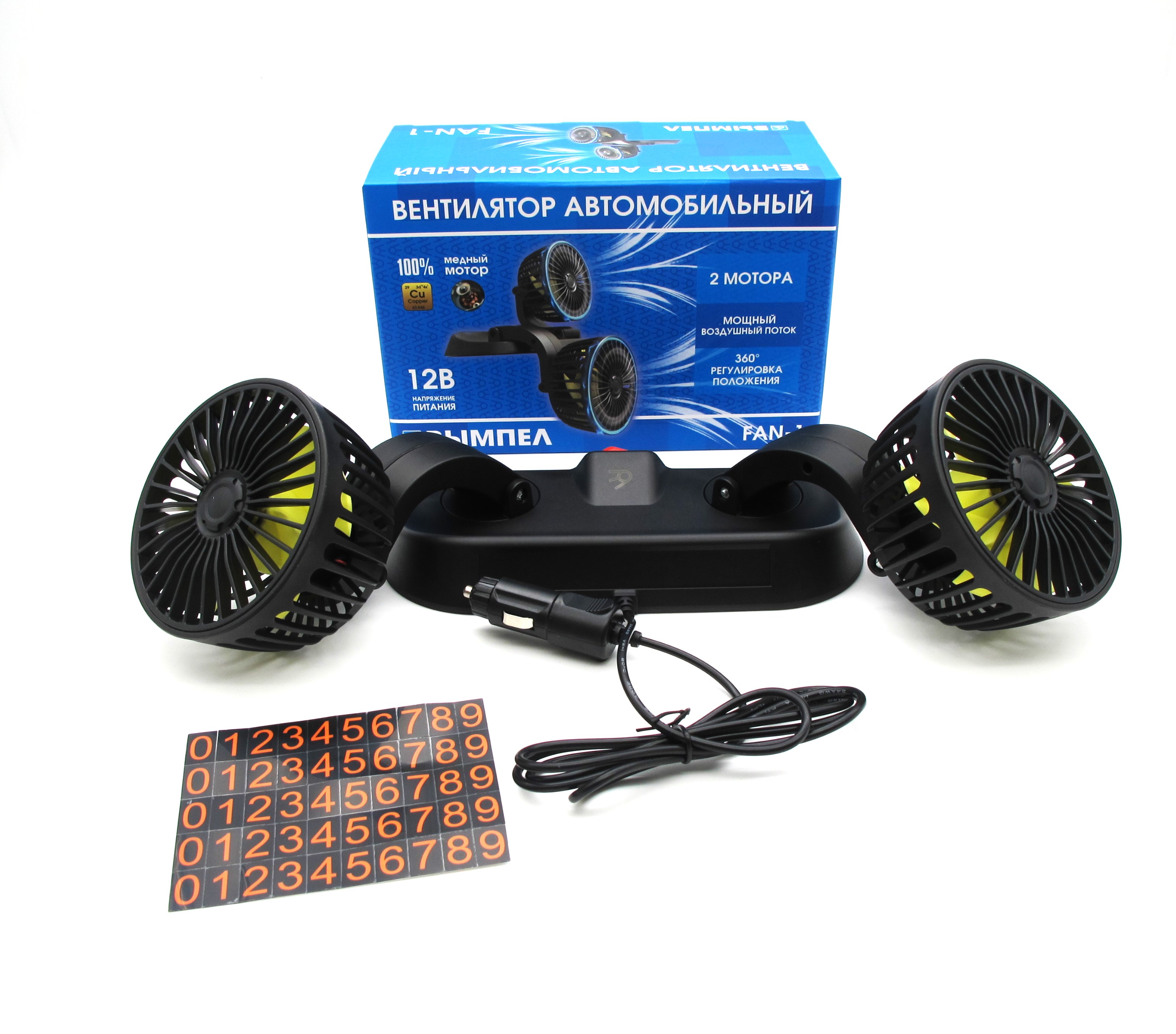 Вентилятор автомобильный Вымпел Fan-1 (12В, 2 скорости, двойной, поворотный, 4 дюйма, подключение в прикуриватель) Орион