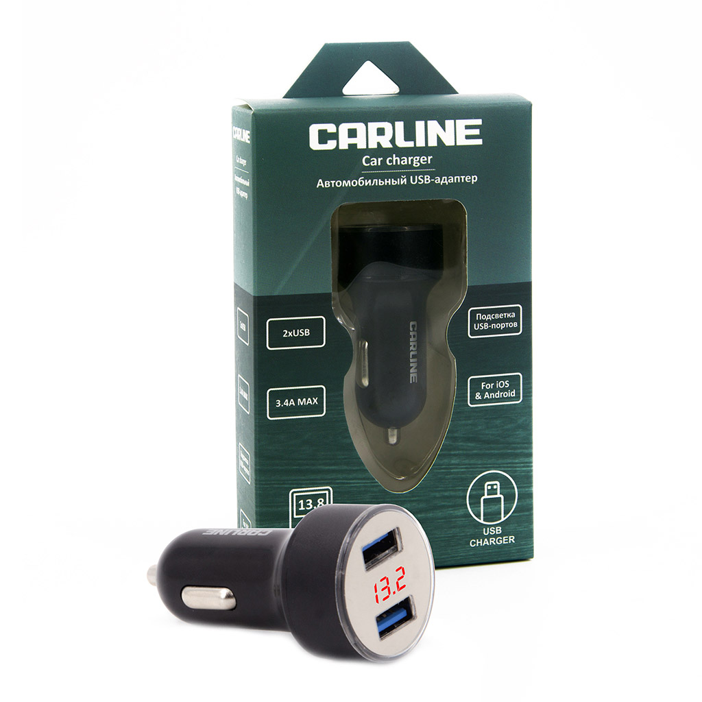 Характеристики «USB автомобильное зарядное устройство 2 порта с вольтметром (USB 3.0 - 3.4A Max), черный»