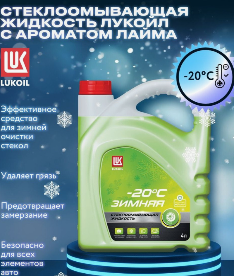 Характеристики «Стеклоомывающая жидкость зимняя Лукойл -20С 4л лайм (омыватель)»