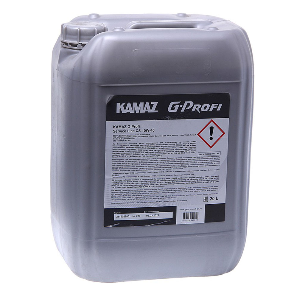 Характеристики «Масло моторное KAMAZ G-Profi Service Line CS 10W-40, 20л.»