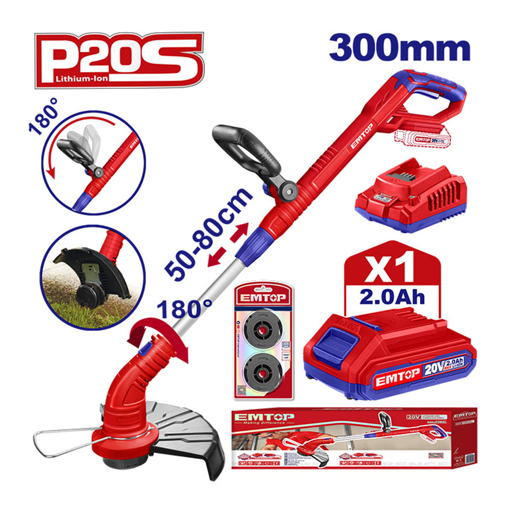 Аккумуляторный тример Напряжение: 20 В Скорость холостого хода: 8200 об/мин Диаметр резки: 300 мм