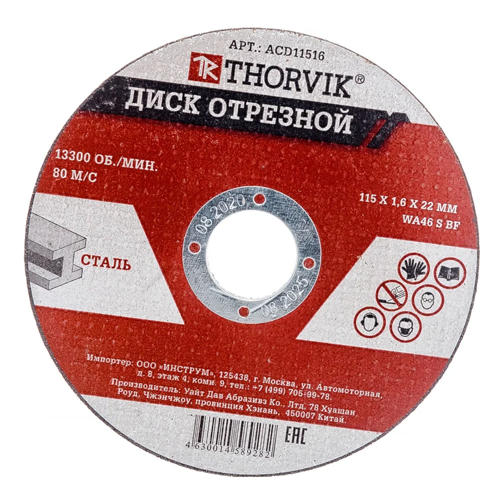 Характеристики «Диск отрезной абразивный по металлу, 115х1.6х22.2 мм»