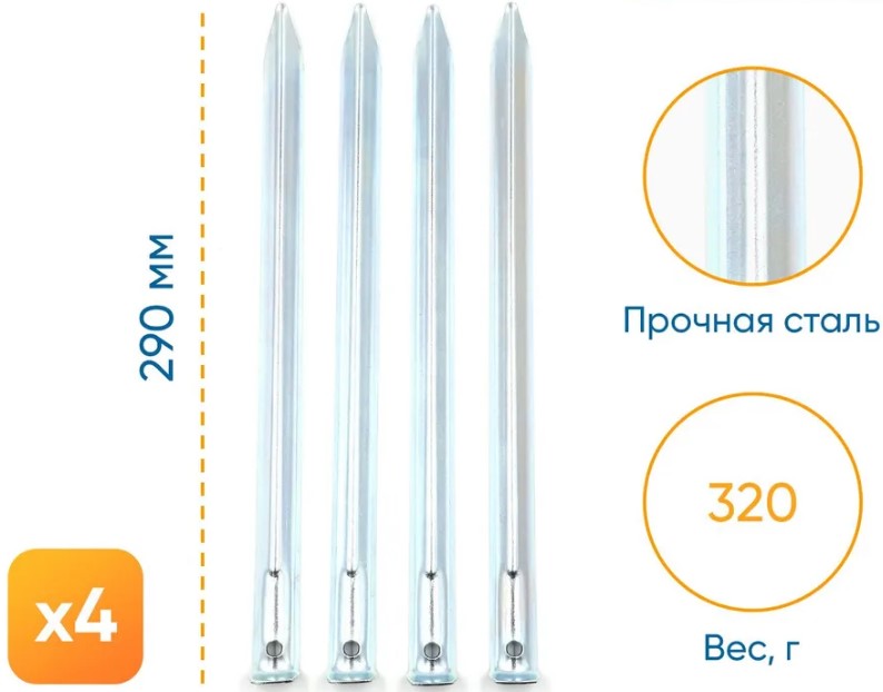 Характеристики «Колышки усиленные для палатки "СЛЕДОПЫТ", L-29см, на блистере (4шт) (****)»