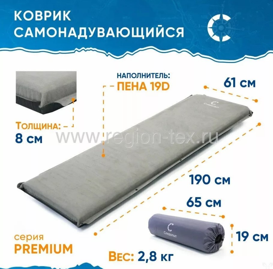 Отзывы о «Коврик самонадувающийся "СЛЕДОПЫТ" 190x61x8cм, премиум, цв. серый (****)»