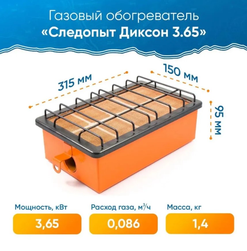 Характеристики «Обогреватель (плита) инфракрасный газовый СЛЕДОПЫТ "Диксон" 3,65 кВт»