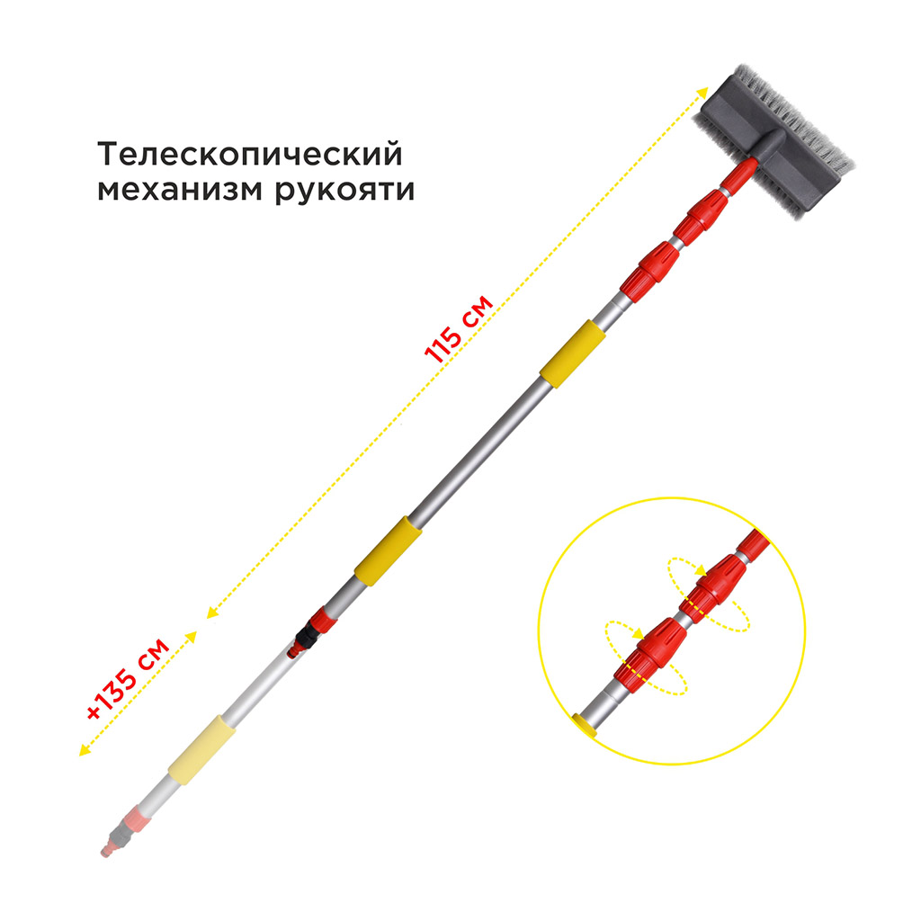 Щетка телескопическая с краном, щеткой мягкой щетиной 25см, 115-250см