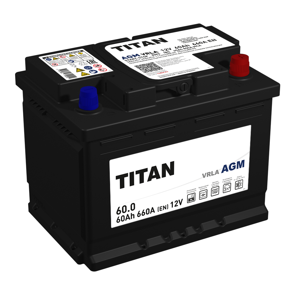 АКБ 6СТ-60.0 VRLA TITAN AGM (L2/пуск.ток 660/плюс справа/гарантия 24 месяца/242х175х190)