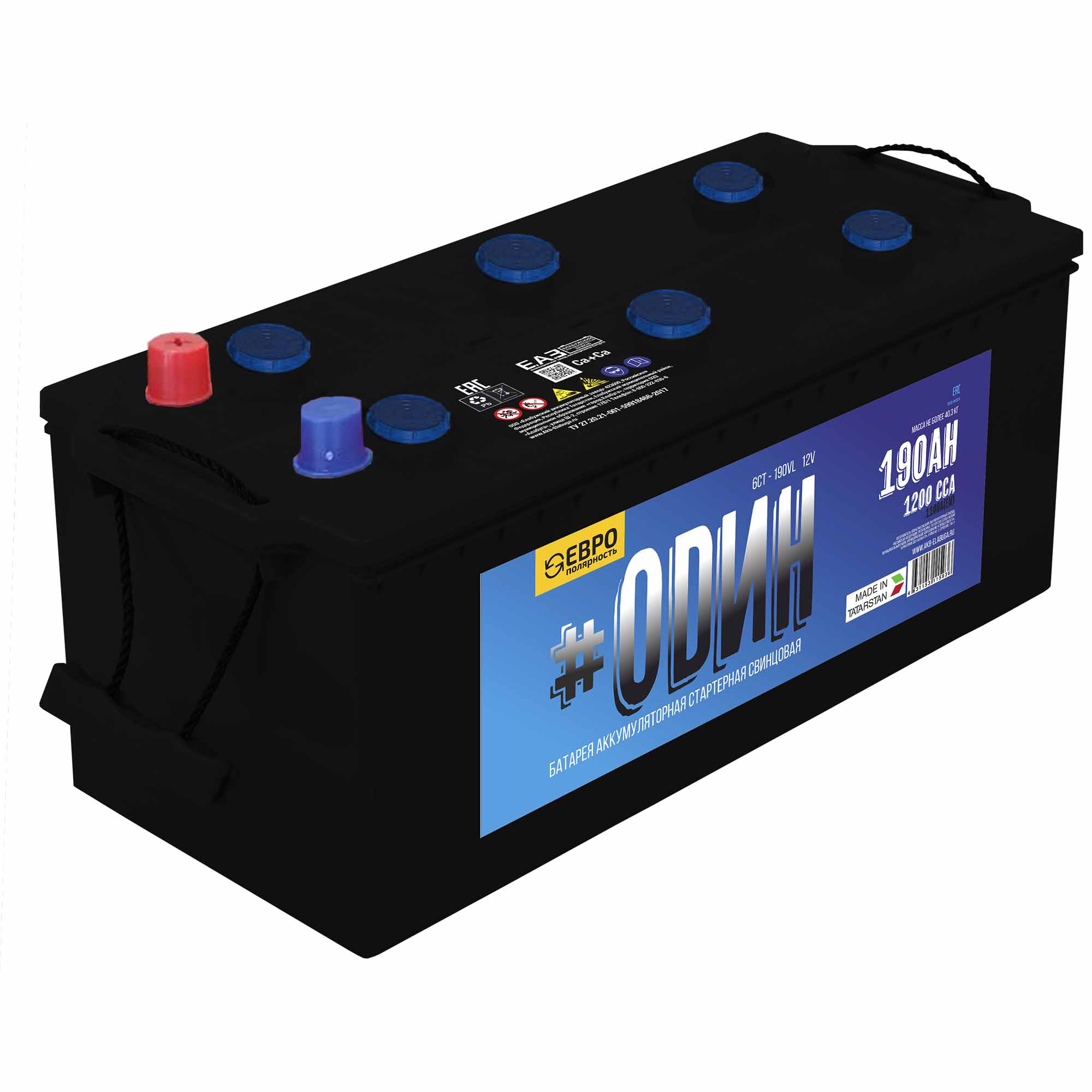 АКБ 6СТ-190 "#ODИH" о.п. (ГП) (пуск. ток. 1200 CCA, плюс слева, гарантия 6 месяцев)