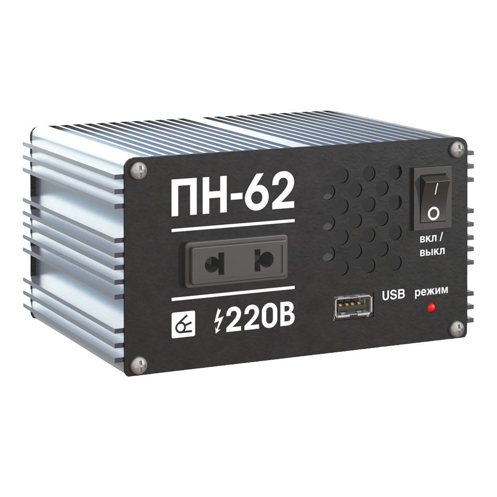 Импульсный преобразователь напряжения Вымпел ПН-62, он же инвертор, служит для преобразования напряжения 12В в эффективное напряжение 220В, чистый синус, благодаря чему от бортовой сети автомобиля можно запитать любые бытовые приборы (мобильный телефон, фен, утюг, ноутбук и т.д.)