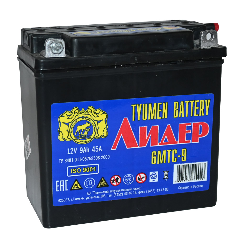 АКБ 6МТС-9 Тюмень "Лидер" сух.заряж.болт пуск. ток 45, плюс справа гарантия 12 месяцев