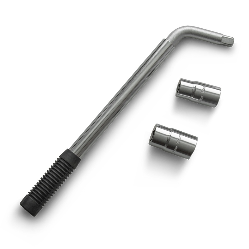 Баллонный ключ AVS применяется для монтажа/демонтажа автомобильных колес. Такой инструмент является идеальным решением для использования в любых автосервисах. Данный ключ имеет в комплекте 2 шт. двусторонние головки с размерами 17 мм и 19 мм, 21 мм и 23 мм. Телескопическая рукоятка позволяет менять длину рычага (350-510 мм) и регулировать усилие на откручивание или закручивание болтовых соединений. Ключ выполнен из высококачественной стали. Рукоятка ключа прорезинена и обеспечивает надежный захват, не выскальзывая из руки.