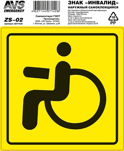 Отзывы о «Знак "Инвалид" ГОСТ наруж.самоклеящ. AVS ZS-02 (150x150) инд.упак.1 шт.»