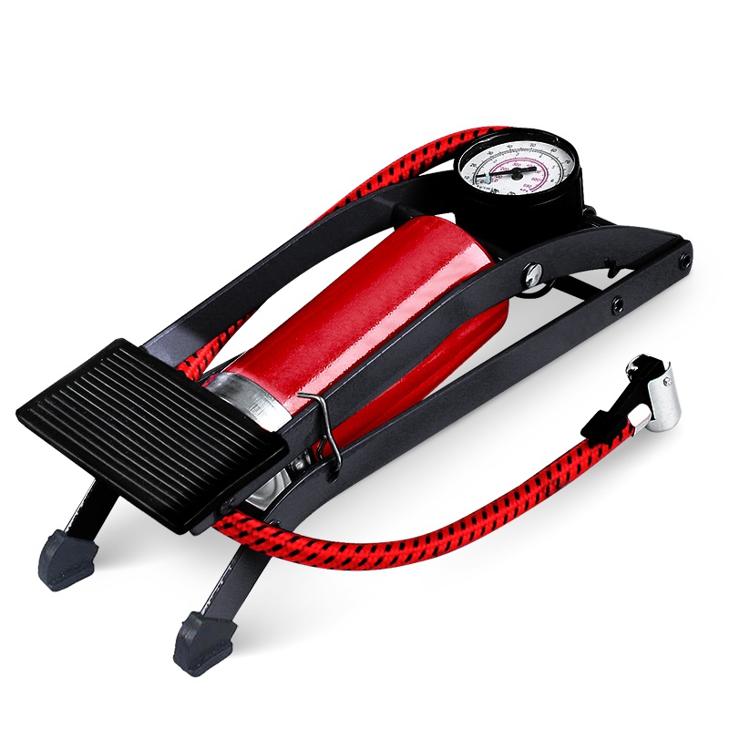 Насос состоит из опорной рамы, педали, поршня со штоком, цилиндра, возвратной пружины, манометра со шлангом и невозвратным клапаном.