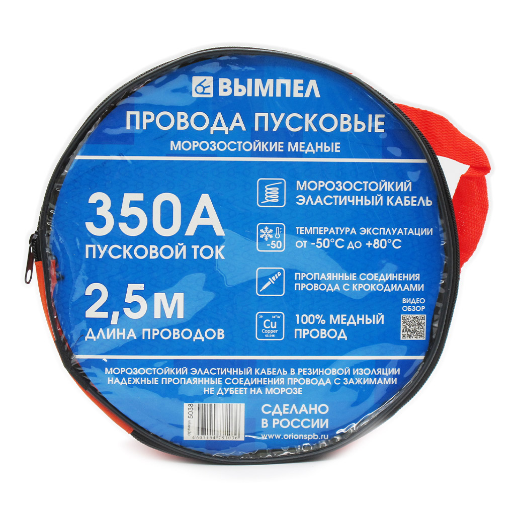 Характеристики «Пусковые провода 350А, 2.5 м,хладостойкие, в сумке / Орион»