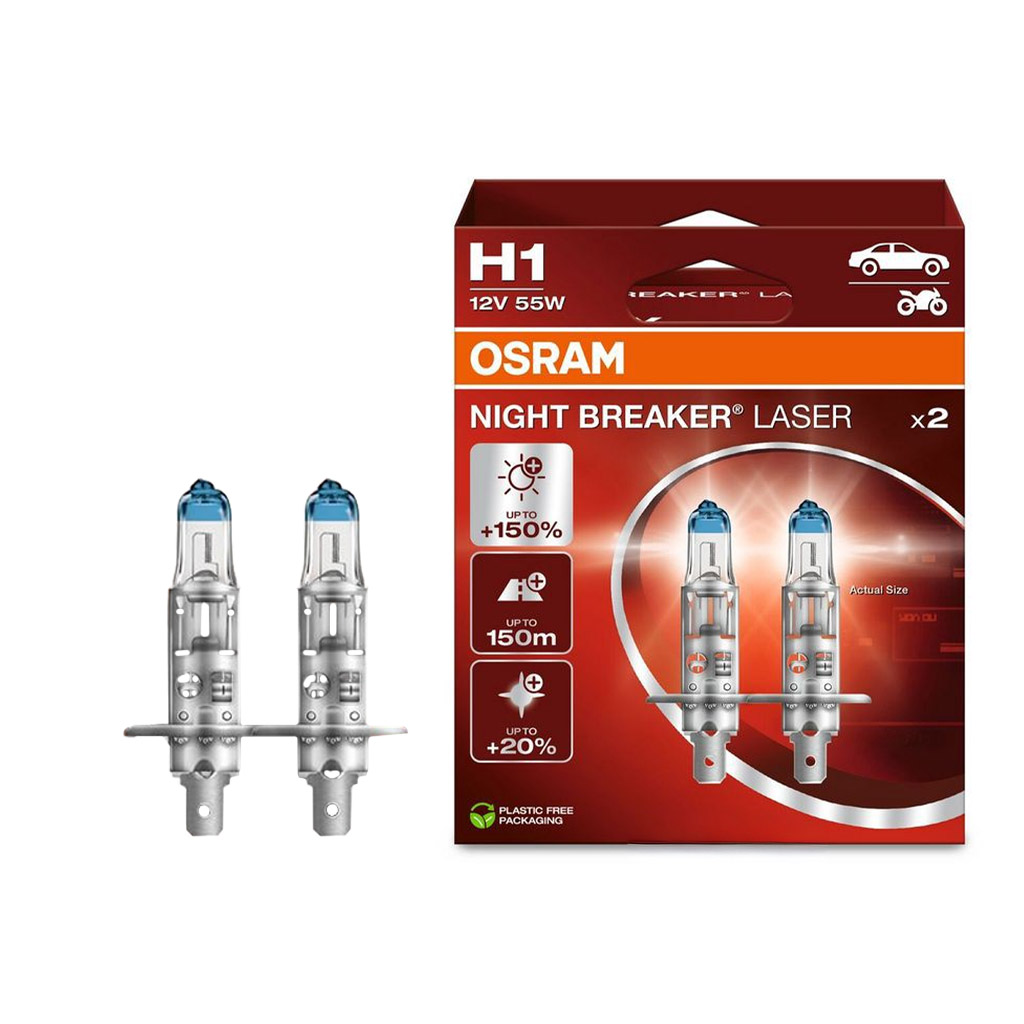 Отзывы о «Лампа галогенная H1 +150% Night Breaker Laser 55W (P14,5s) 12В, коробка: 2шт»