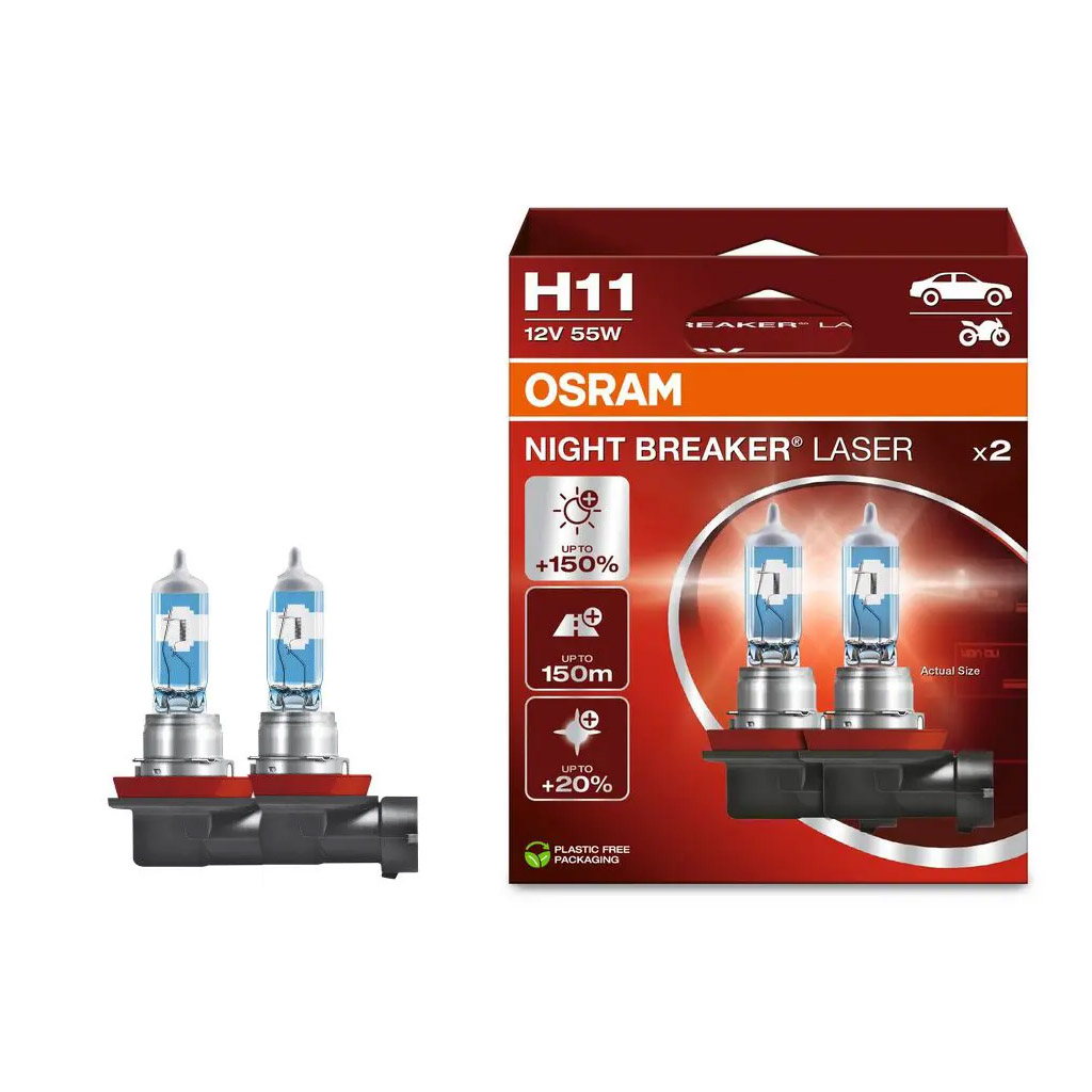 Отзывы о «Лампа галогенная H11 +150% Night Breaker Laser 55W (PGJ19-2) 12В, коробка: 2шт»