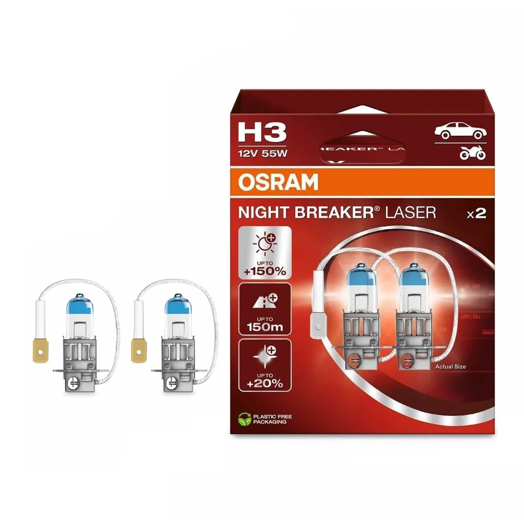 Лампа галогенная H3 +150% Night Breaker Laser 55W (PK22s) 12В, коробка: 2шт