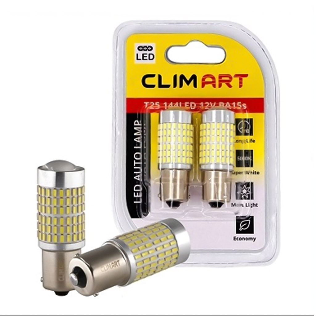 • 144 диода увеличенной яркости2 лампы Clim Art T25 144LED 12V (P21W)