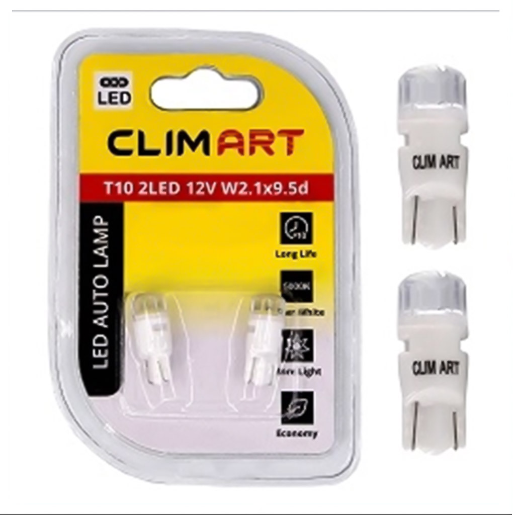 По сравнению с лампами накаливания, диодные Led лампы Clim Art T10 2LED 12V имеют увеличенный срок службы, благодаря чему значительно дольше не требуют замены.