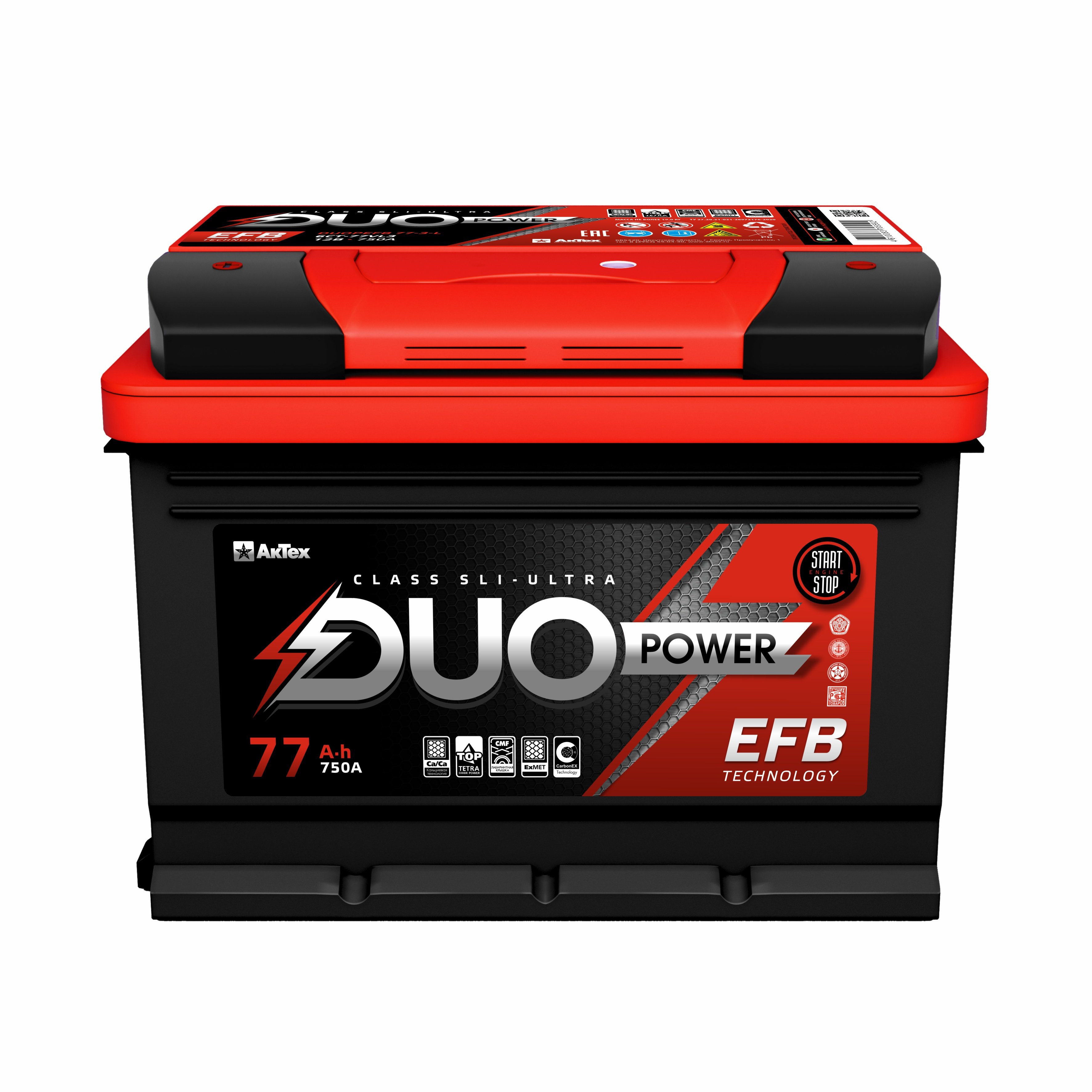 АКБ 6СТ-77.0VL DUO POWER EFB (L3/пуск. ток 750А/плюс справа/гарантия 24 месяца/278х175х190)
