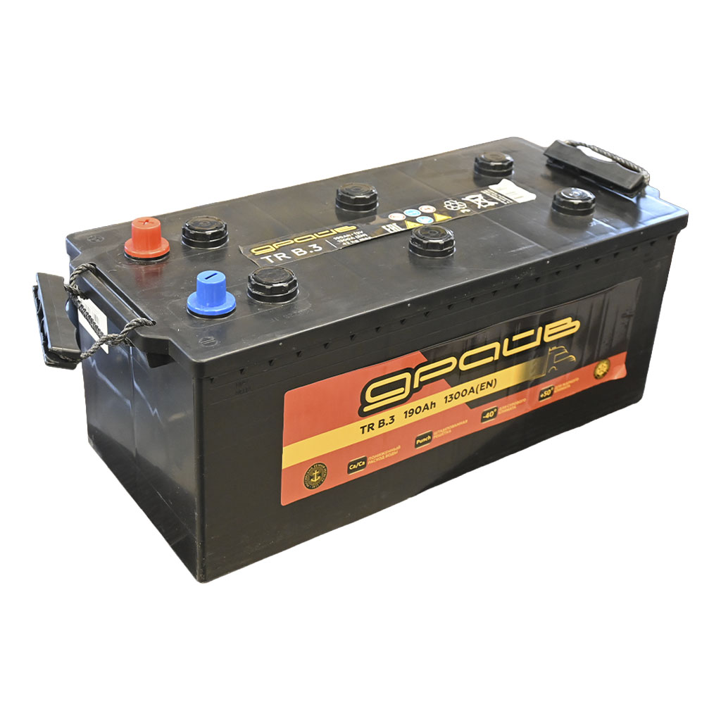 Характеристики «АКБ 6СТ-190.3 ДРАЙВ конус (B3/пуск.ток 1300А/плюс слева/гарантия 12 месяцев/513х223х223/Белоруссия)»