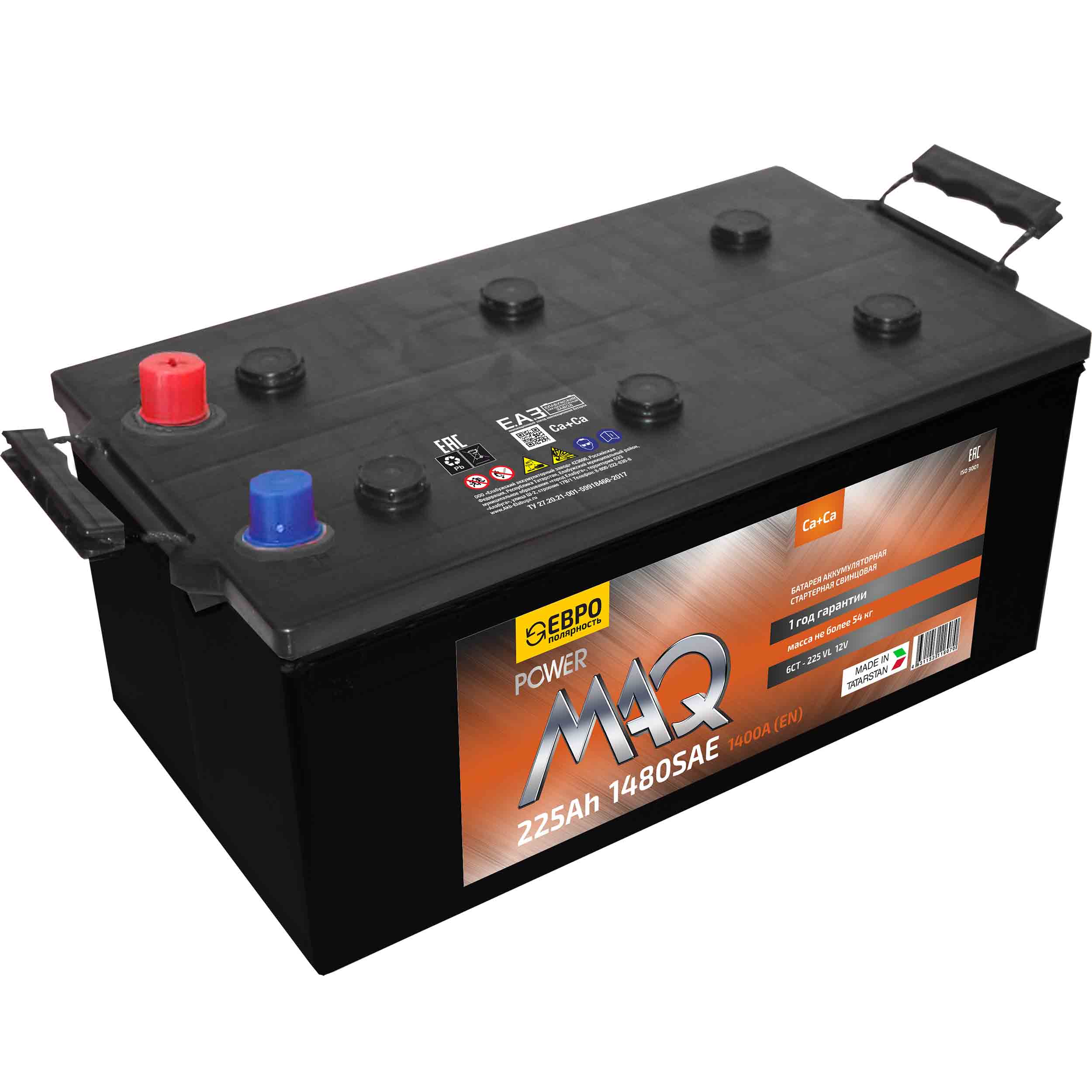 АКБ 6СТ-225 "powerMAQ" о.п. (ГП) (пуск. ток. 1480, плюс слева, гарантия 12 месяцев)