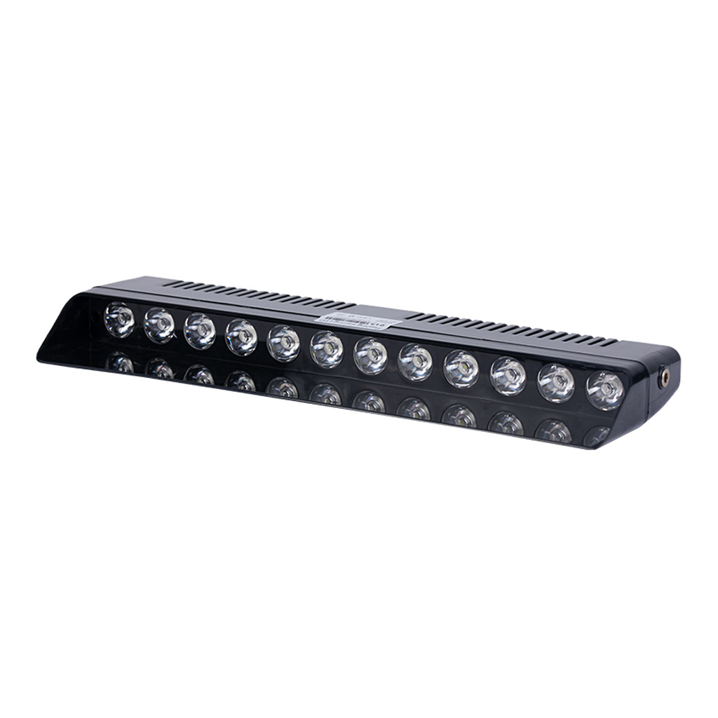 Прожектор со стробоскопом на лобовое стекло красный-синий-белый 12В (325*105мм), 1шт