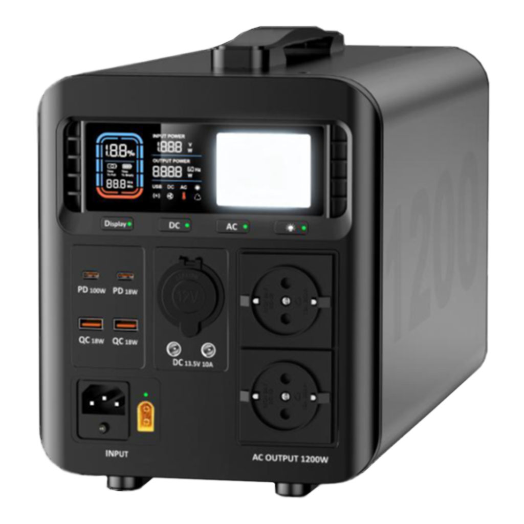 Компактная и мощная портативная электростанция Granditech K1200 представляет собой многофункциональную систему с аккумулятором, которая выполняет роль мини-генератора, обеспечивая зарядку телефонов, ноутбуков, фонариков и других портативных устройств.
