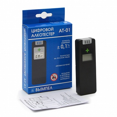Алкотестер АТ-01 (рус. яз) (Напряжение питания 2х1.5 B AAA / Диапазон измерения 0,0-1,9 ‰ (0,0-1,9 г/л) / Погрешность ±0,1 ‰)
