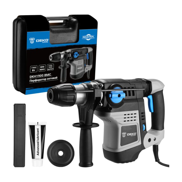 Перфоратор сетевой DEKO DKH1900, 1900 Вт, с патроном SDS-max, 10 Дж, в кейсе
