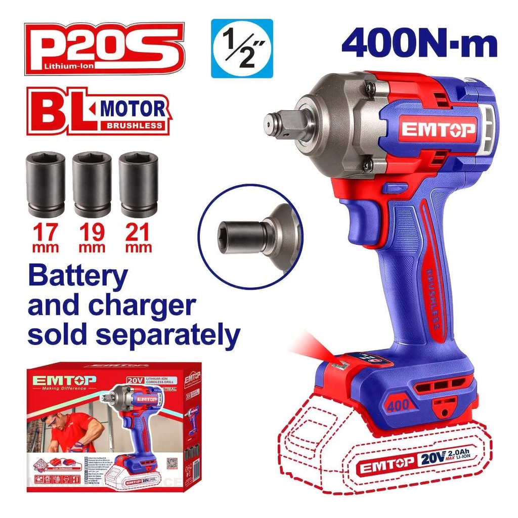 Характеристики «Аккумуляторный ударный гайковерт, 400 Нм»
