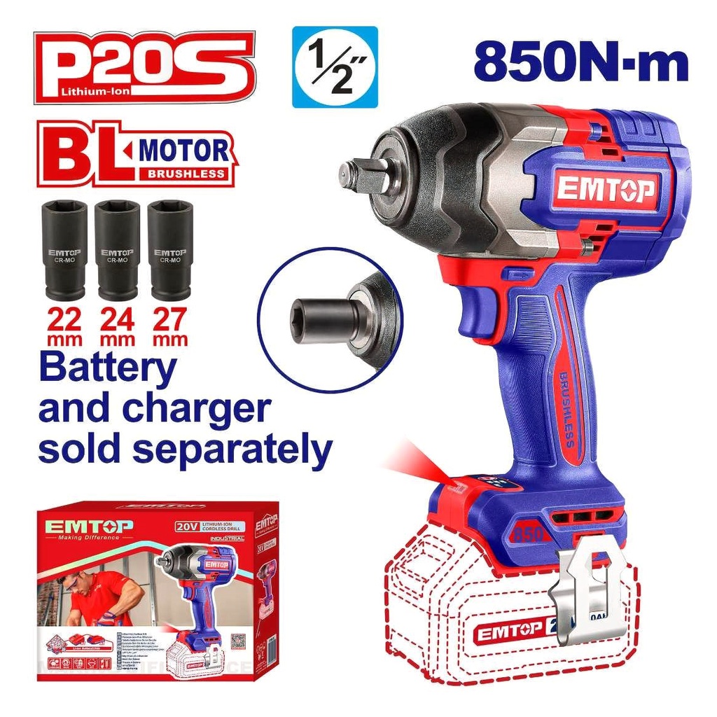 Характеристики «Аккумуляторный ударный гайковерт, 850 Нм»
