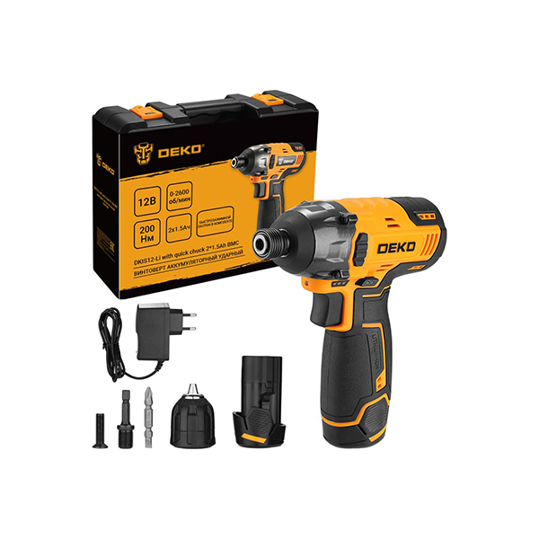 Винтоверт аккумуляторный ударный DEKO DKIS12-Li, с быстрозажимным патроном, 12В, 2*1.5Ач, в кейсе