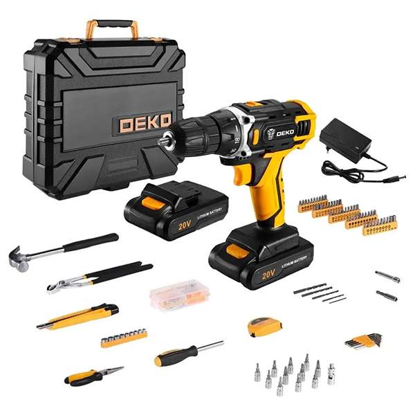 Характеристики «Аккумуляторная дрель-шуруповерт DEKO DKCD20FU-Li в кейсе + набор 195 инструментов для дома, 20В, 2х2»